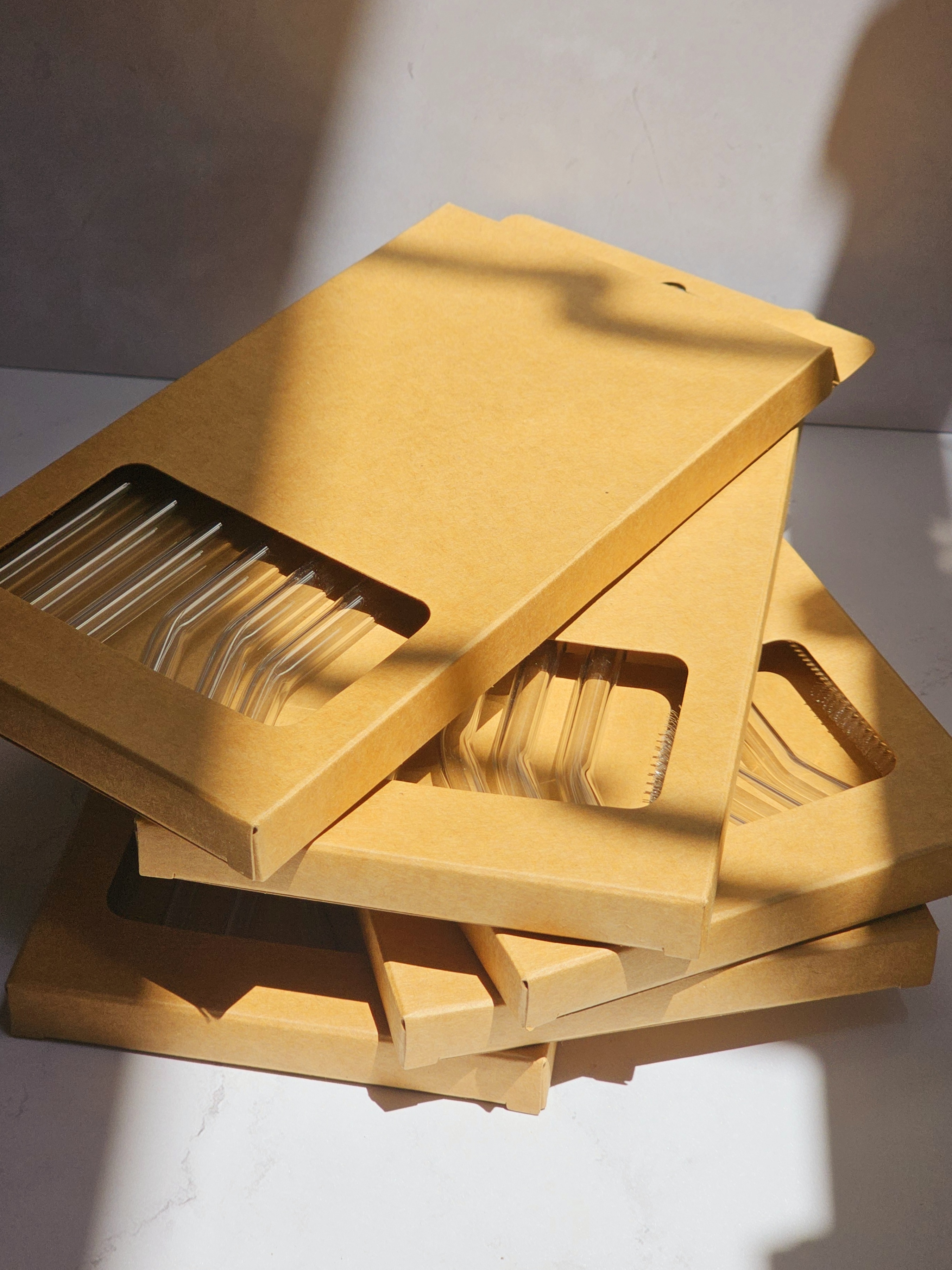 ۶ عدد نِی پیرکس داره که ۳ تا از نیها سر کج و ۳ تا از نیها صاف هستن + ۱ عدد نیشور که تمیز کردنشونو راحت میکنه..